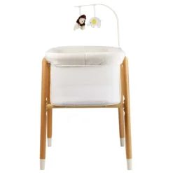 Dit mooie Amila wiegje van Babygo bevordert het samen slapen, waardoor je baby ’s nachts dicht bij je is en toch in zijn of haar eigen bedje ligt. Het wiegje heeft een mooie crème kleur, met een houten onderstel.