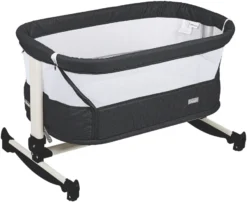 Dit wiegje van Babygo heeft 4 wieltjes, waardoor het gemakkelijk verplaatsen is. Het wiegje is op 5 verschillende hoogtes in te stellen, zodat het aan vrijwel ieder bed past. Daarnaast beschikt het wiegje over een schommelfunctie, zo kan je kleintje lekker in slaap vallen als hij/zij alleen in het bedje ligt. Je maakt er gemakkelijk een co-sleeper van door de zijkant van mesh open te ritsen.