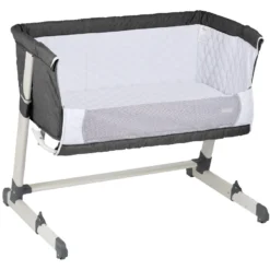 Dit mooie Babygo wiegje bevordert het samen slapen, waardoor je baby ’s nachts dicht bij je is en toch in zijn of haar eigen bedje ligt. Het wiegje is grijs van kleur, hij is eenvoudig te monteren en demonteren en de bekleding kan verwijderd en gewassen worden. Het grote voordeel van het wiegje is dat het mogelijk wordt om samen met je baby te slapen.