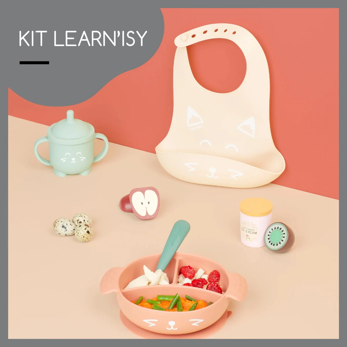 Als laatste heeft de set een superhandige slab met opvangbak, hierdoor wordt het eten een feestje in plaats van een kliederboel. Naast dat deze set heel handig is, heeft het ook nog een zeer schattig design. De set kan met de hand of in de vaatwasser gewassen worden. Geschikt voor kindjes van 15 tot 24 maanden.