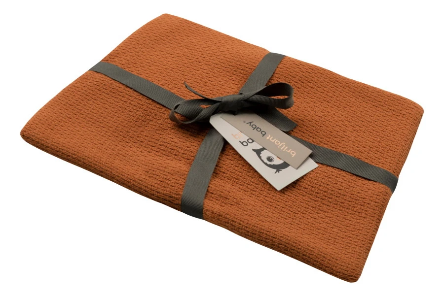 Onder deze prachtige zomer ledikantdeken van het merk Briljant komt je kleintje helemaal tot rust. Deze comfortabele ledikantdeken van 100 x 150 cm staat garant voor heerlijk slapen. Een heerlijk deken geschikt voor in de zomer, omdat de katoenen stof ademt en vocht opneemt. De deken is in de kleur terracotta.
