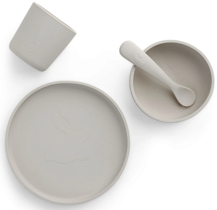 Samen met je kindje lekker tafelen wordt een feestje met deze mooie dinerset van Jollein! Deze schattige 4-delige set bestaat uit een bord, kommetje, beker en lepel. Dankzij de handige zuignappen onder zowel het bordje als kommetje zal je kindje de spulletjes niet meer om kunnen stoten en wordt er minder geknoeid!