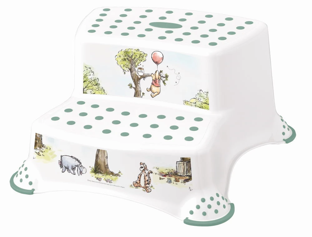 Het opstapje is wit van kleur en is voorzien van leuke afbeelding van Winnie De Poeh en zijn vriendjes. De nieuwe technologie van overprint (IML) voorkomt dat de afbeelding vervaagt of loslaat.
