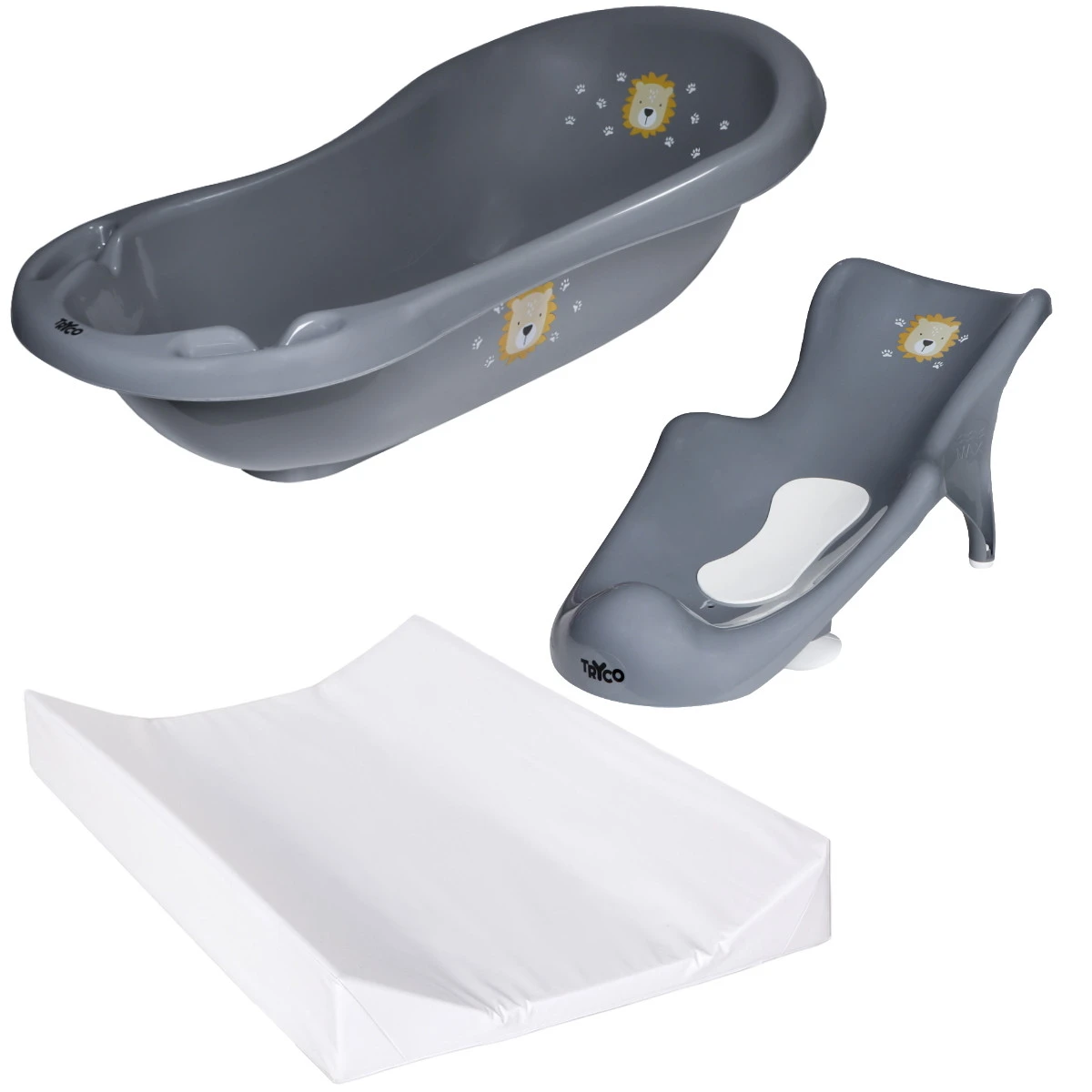 Met deze 3-delige Tryco badset heb je in één keer alles wat je nodig hebt om je kindje te laten badderen en te verschonen! Ideaal, want zo hoef je niet verder te zoeken. De Tryco 3-delige badset bevat een waskussen, badje en een badzitje. De spullen zijn van goede kwaliteit maar toch heel voordelig!